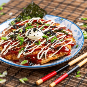 O Okonomiyaki é uma espécie de panqueca contendo uma variedade de ingredientes.